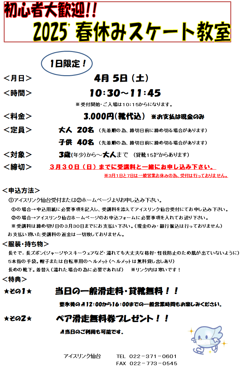 1年中楽しめるアイスリンク仙台。ビギナーから選手育成まで、また様々な催し物にもご利用いただけます。